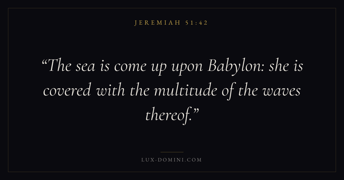 The sea is come up upon Babylon: she is covered with the multitude of the waves thereof.