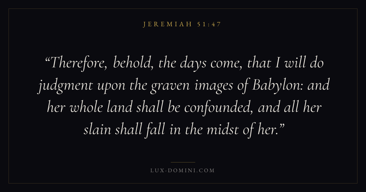 Therefore, behold, the days come, that I will do judgment upon the graven images of Babylon: and her whole land shall be confounded, and all her slain shall fall in the midst of her.