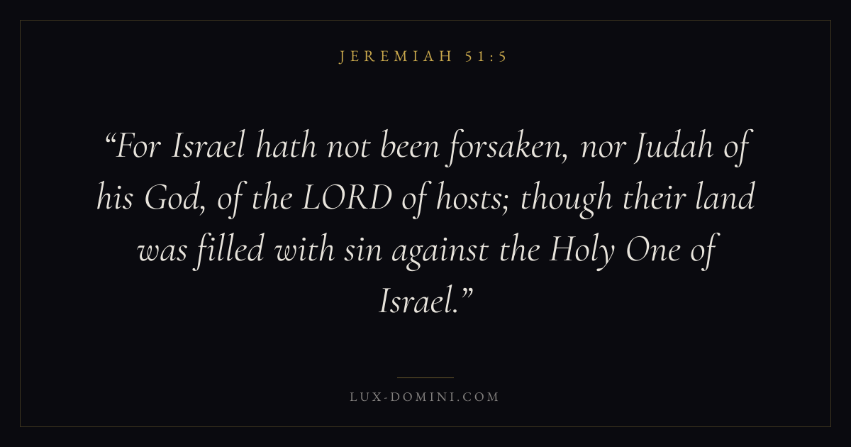 For Israel hath not been forsaken, nor Judah of his God, of the LORD of hosts; though their land was filled with sin against the Holy One of Israel.