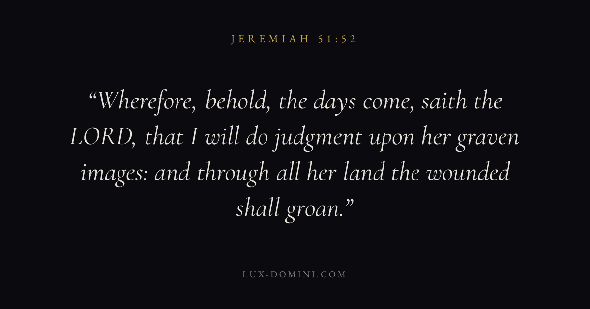 Wherefore, behold, the days come, saith the LORD, that I will do judgment upon her graven images: and through all her land the wounded shall groan.