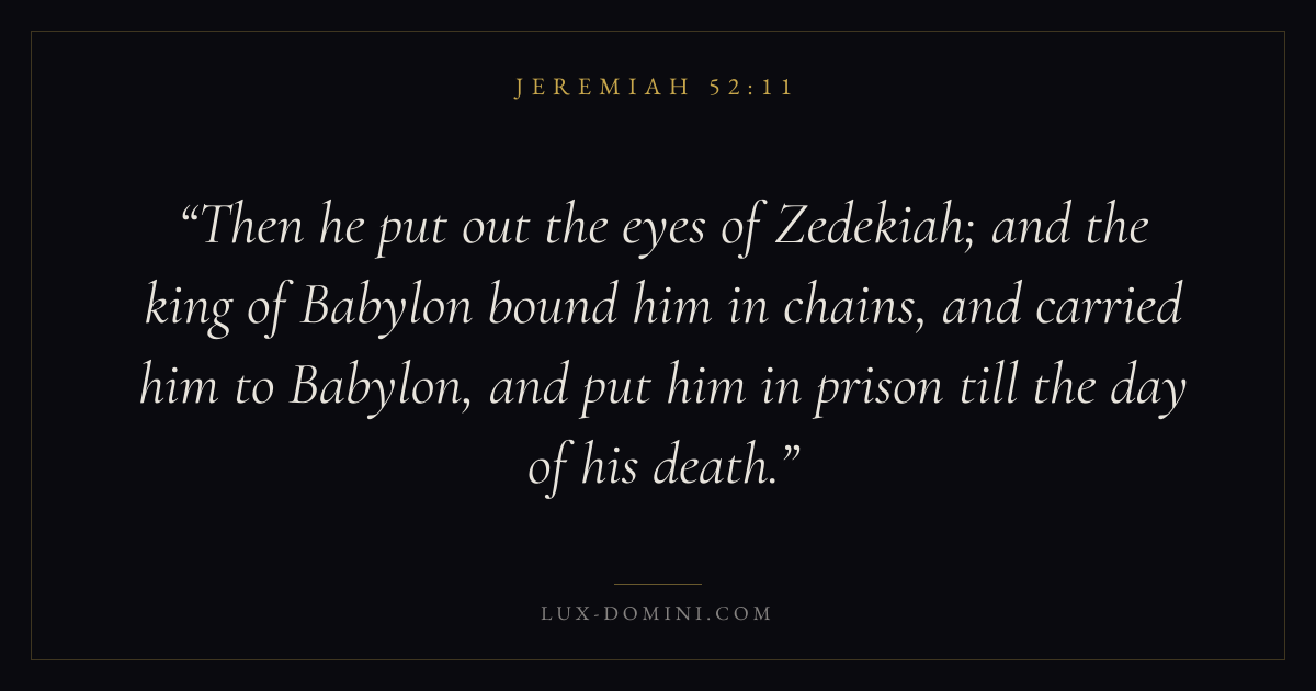 Then he put out the eyes of Zedekiah; and the king of Babylon bound him in chains, and carried him to Babylon, and put him in prison till the day of his death.