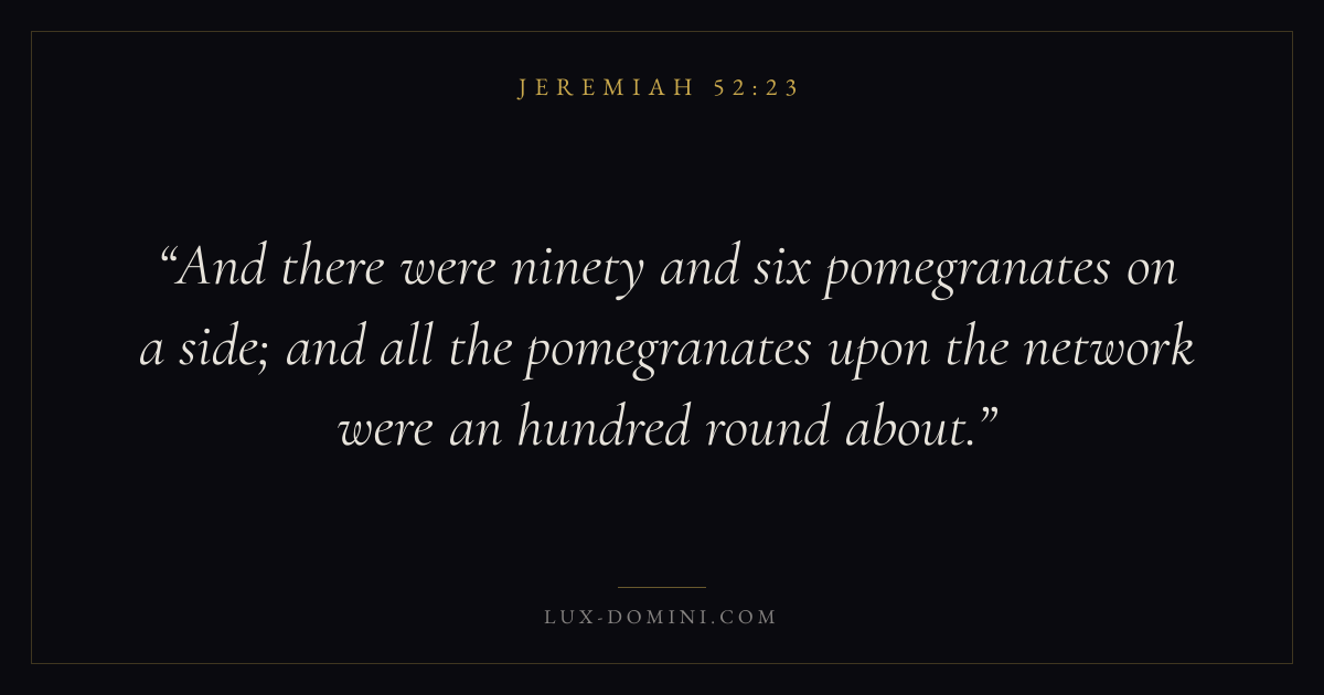 And there were ninety and six pomegranates on a side; and all the pomegranates upon the network were an hundred round about.