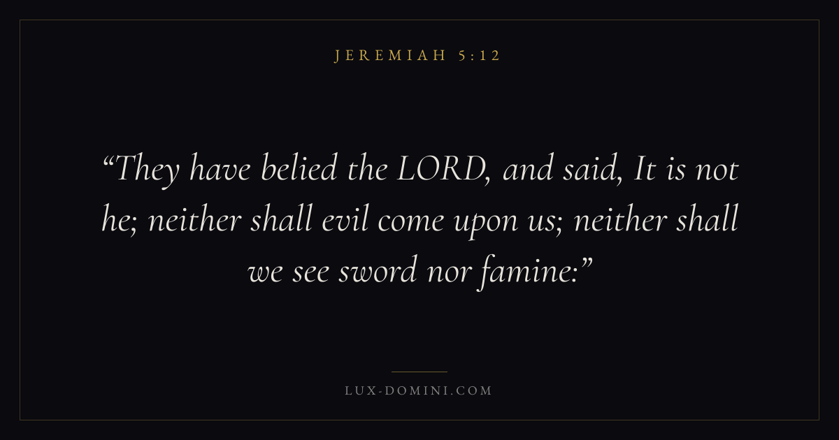 They have belied the LORD, and said, It is not he; neither shall evil come upon us; neither shall we see sword nor famine: