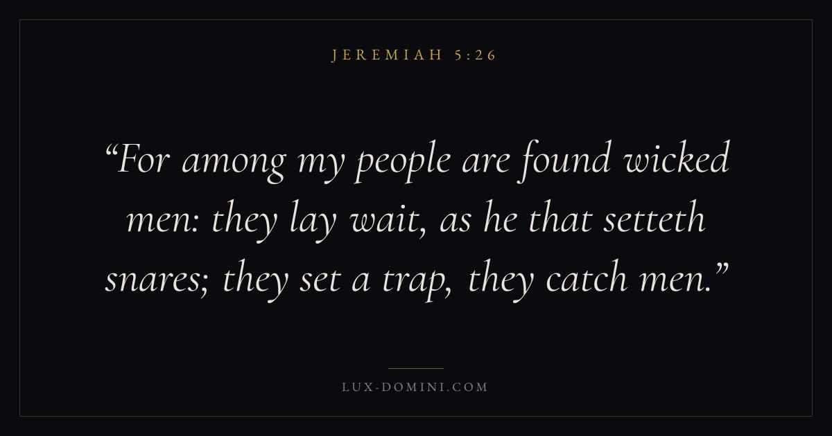 For among my people are found wicked men: they lay wait, as he that setteth snares; they set a trap, they catch men.