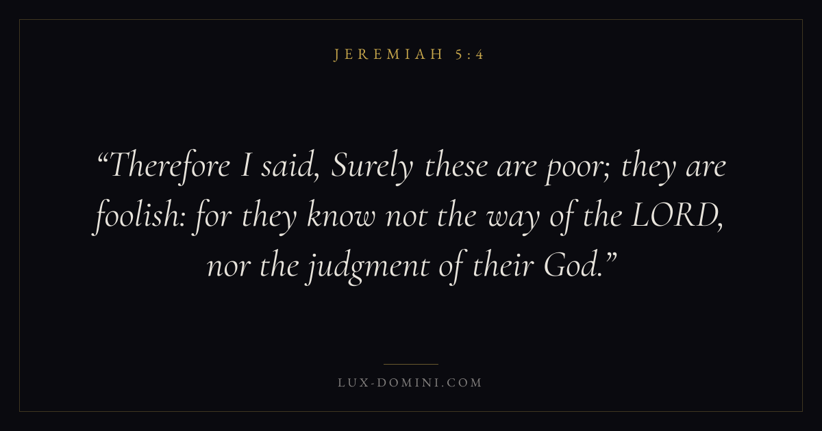 Therefore I said, Surely these are poor; they are foolish: for they know not the way of the LORD, nor the judgment of their God.