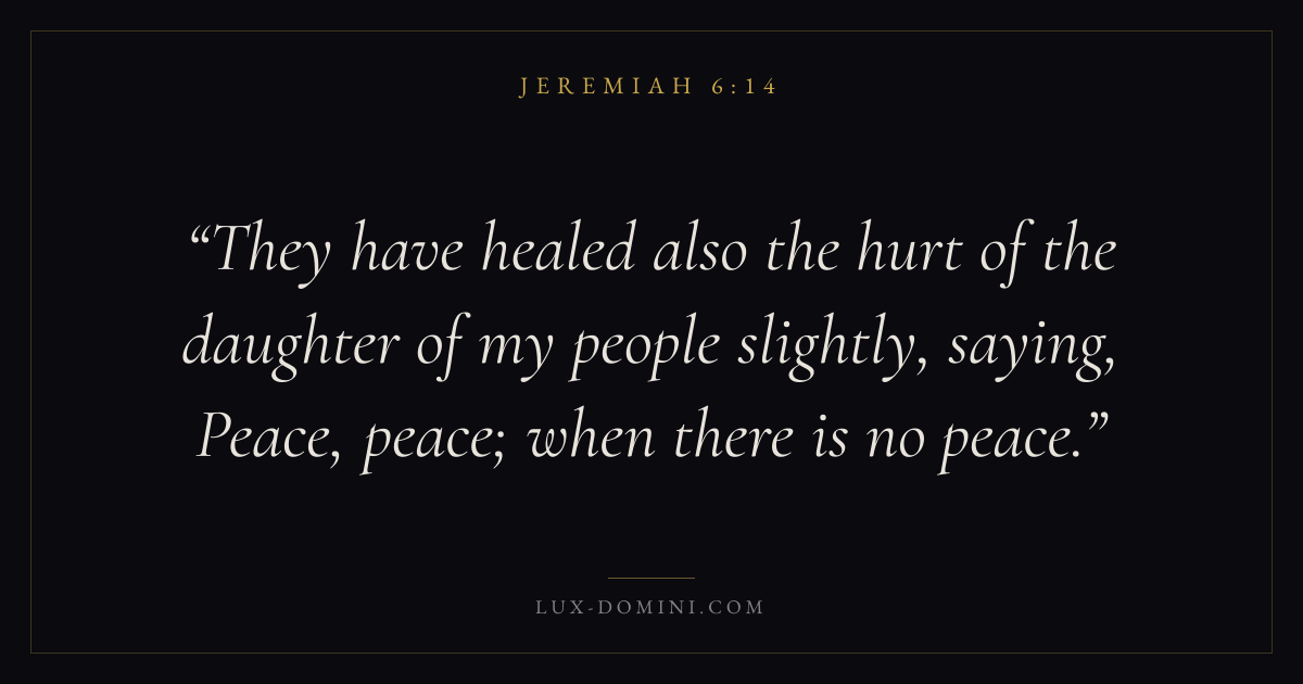 They have healed also the hurt of the daughter of my people slightly, saying, Peace, peace; when there is no peace.