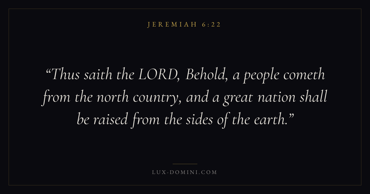 Thus saith the LORD, Behold, a people cometh from the north country, and a great nation shall be raised from the sides of the earth.