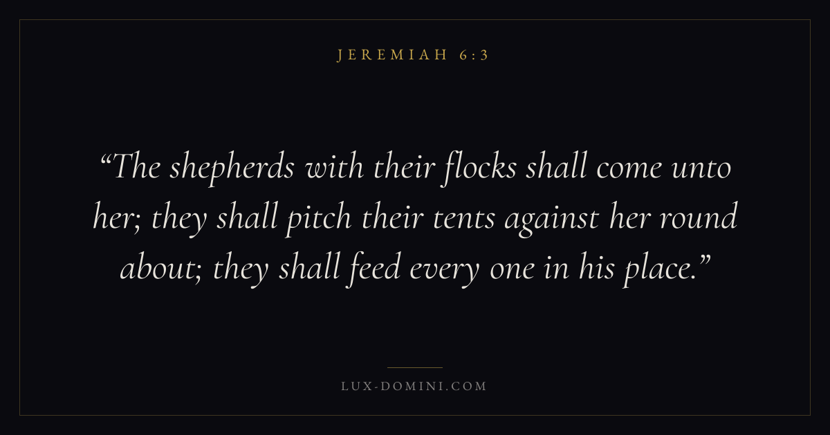 The shepherds with their flocks shall come unto her; they shall pitch their tents against her round about; they shall feed every one in his place.