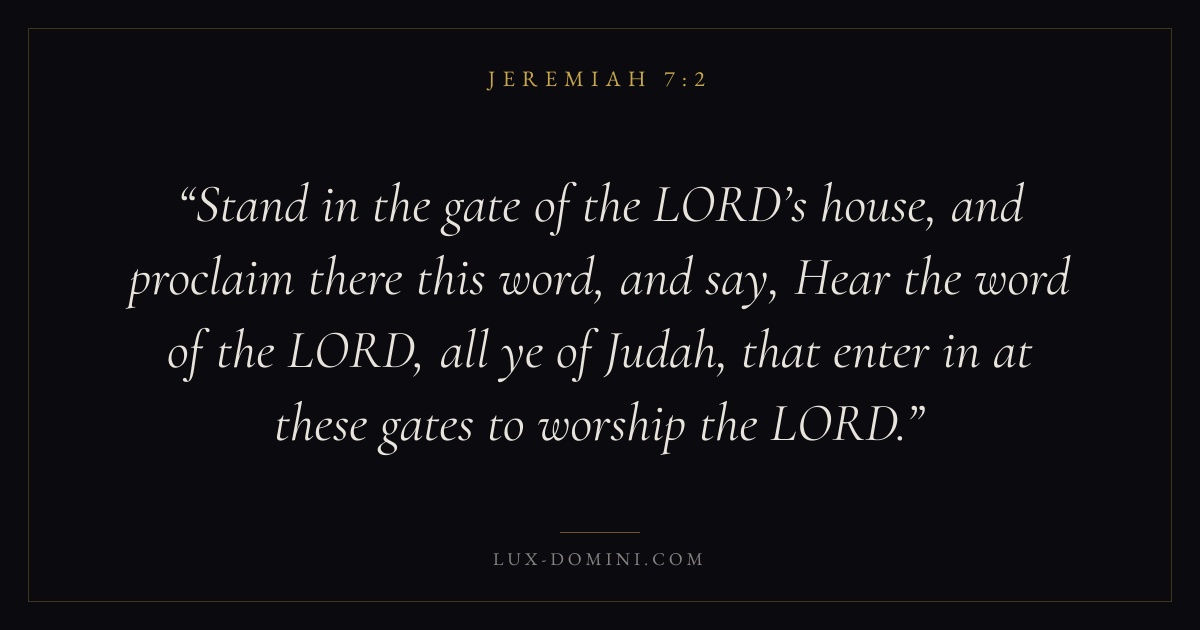 Stand in the gate of the LORD’s house, and proclaim there this word, and say, Hear the word of the LORD, all ye of Judah, that enter in at these gates to worship the LORD.