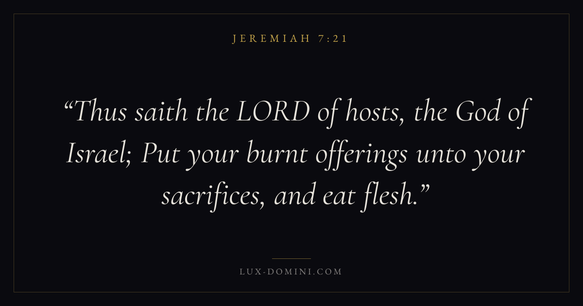 Thus saith the LORD of hosts, the God of Israel; Put your burnt offerings unto your sacrifices, and eat flesh.