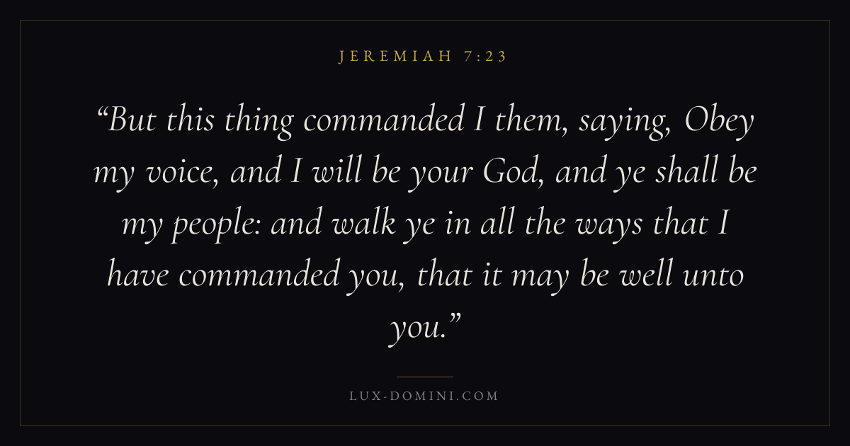 But this thing commanded I them, saying, Obey my voice, and I will be your God, and ye shall be my people: and walk ye in all the ways that I have commanded you, that it may be well unto you.