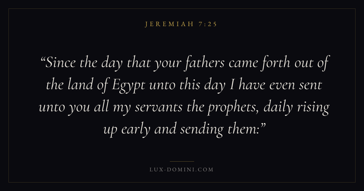 Since the day that your fathers came forth out of the land of Egypt unto this day I have even sent unto you all my servants the prophets, daily rising up early and sending them: