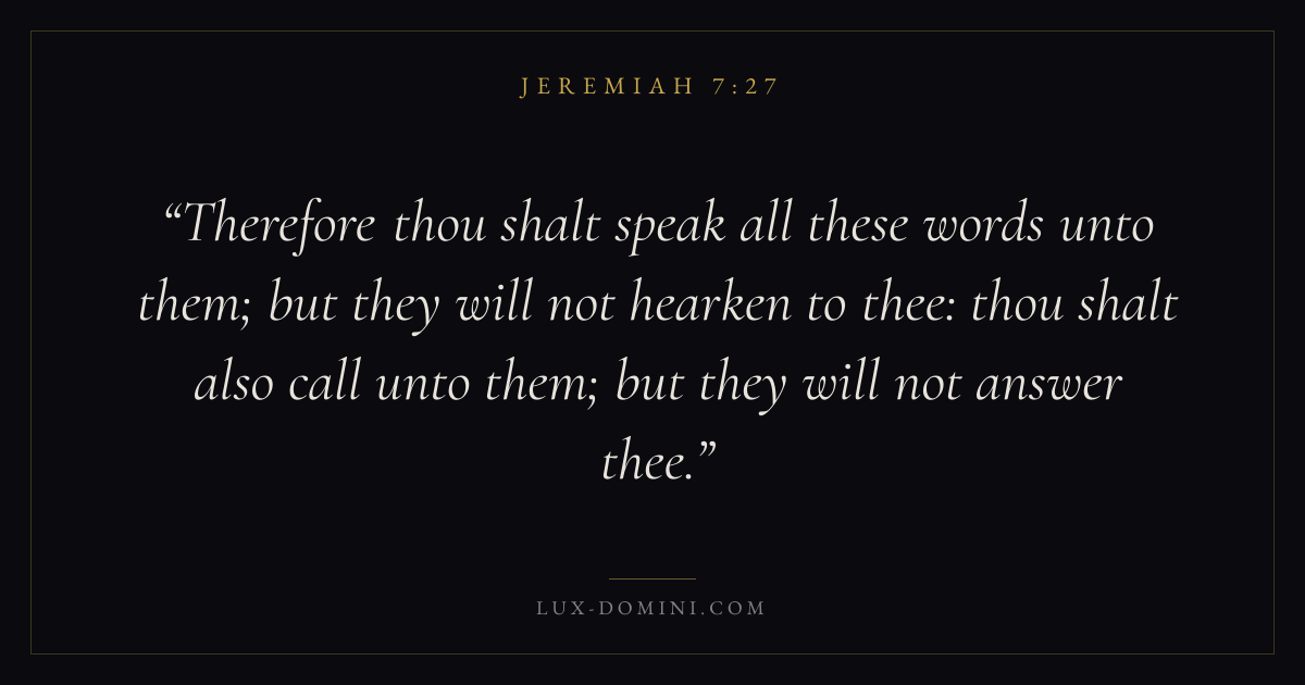 Therefore thou shalt speak all these words unto them; but they will not hearken to thee: thou shalt also call unto them; but they will not answer thee.