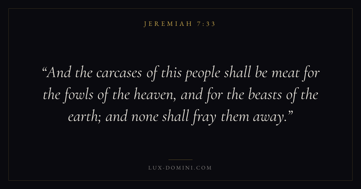 And the carcases of this people shall be meat for the fowls of the heaven, and for the beasts of the earth; and none shall fray them away.