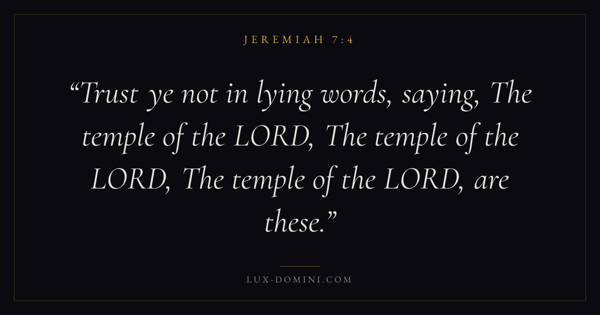 Trust ye not in lying words, saying, The temple of the LORD, The temple of the LORD, The temple of the LORD, are these.
