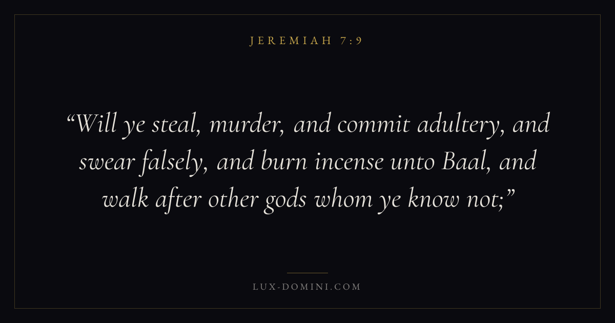 Will ye steal, murder, and commit adultery, and swear falsely, and burn incense unto Baal, and walk after other gods whom ye know not;