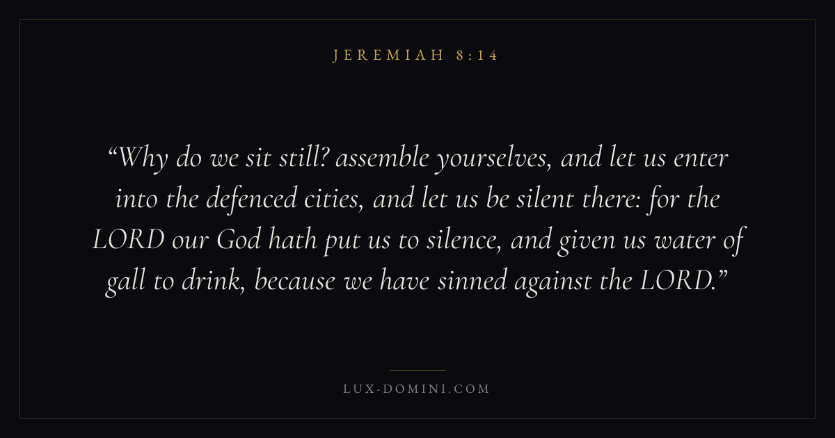 Why do we sit still? assemble yourselves, and let us enter into the defenced cities, and let us be silent there: for the LORD our God hath put us to silence, and given us water of gall to drink, because we have sinned against the LORD.