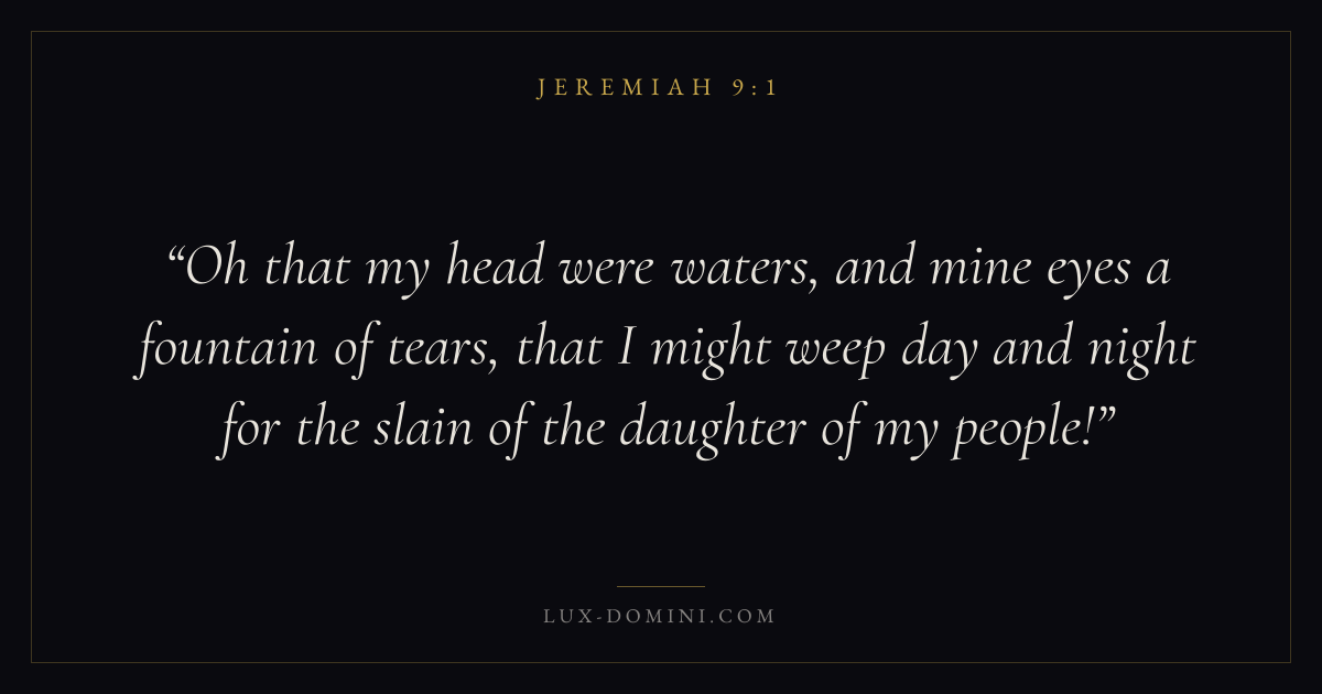 Oh that my head were waters, and mine eyes a fountain of tears, that I might weep day and night for the slain of the daughter of my people!