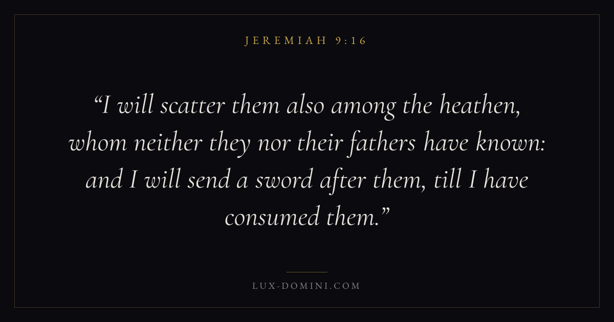 I will scatter them also among the heathen, whom neither they nor their fathers have known: and I will send a sword after them, till I have consumed them.