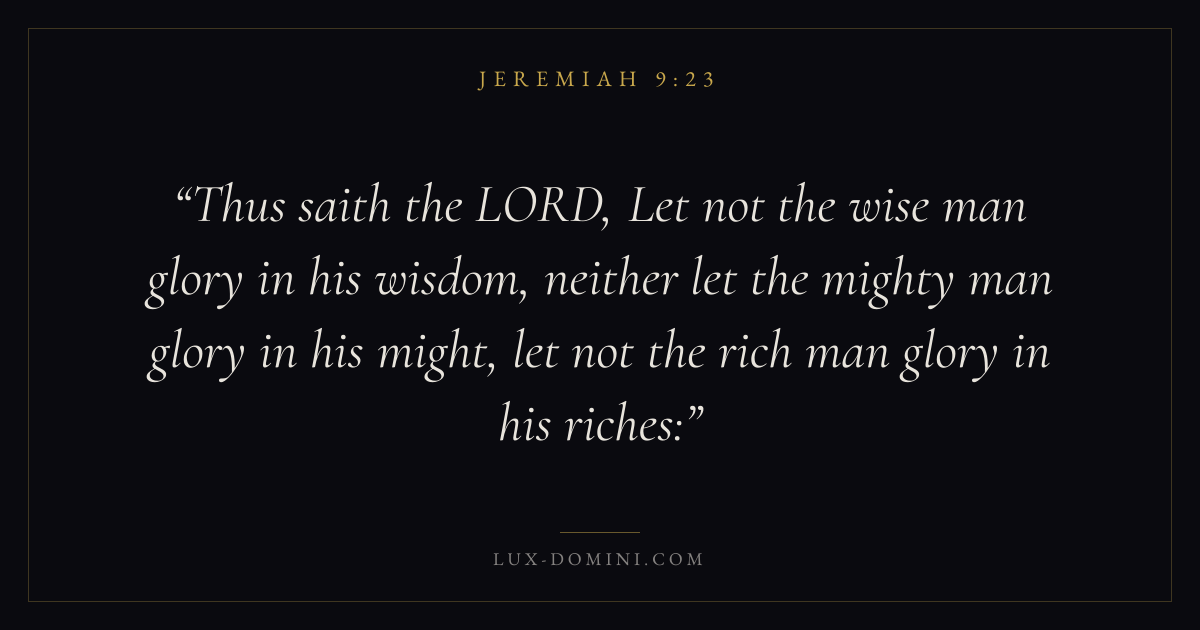 Thus saith the LORD, Let not the wise man glory in his wisdom, neither let the mighty man glory in his might, let not the rich man glory in his riches: