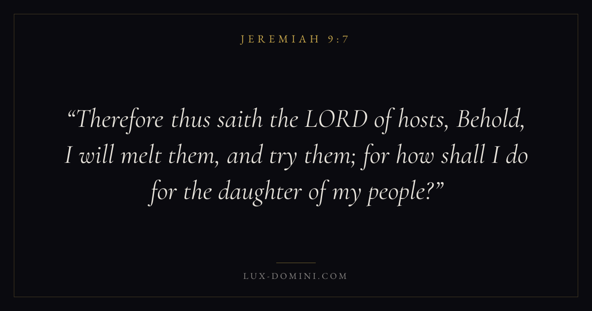 Therefore thus saith the LORD of hosts, Behold, I will melt them, and try them; for how shall I do for the daughter of my people?