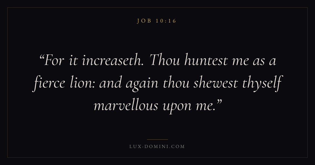For it increaseth. Thou huntest me as a fierce lion: and again thou shewest thyself marvellous upon me.