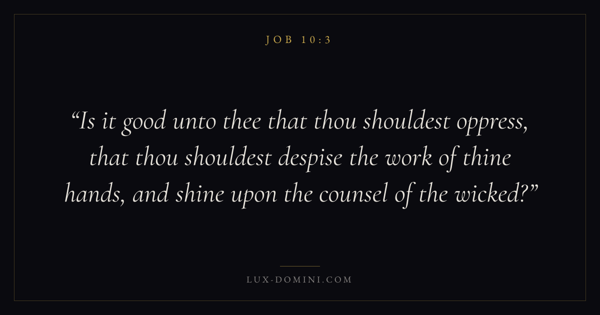 Is it good unto thee that thou shouldest oppress, that thou shouldest despise the work of thine hands, and shine upon the counsel of the wicked?
