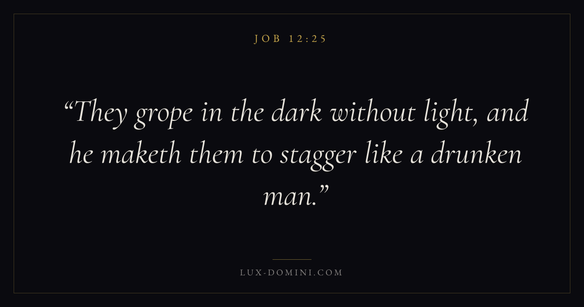 They grope in the dark without light, and he maketh them to stagger like a drunken man.
