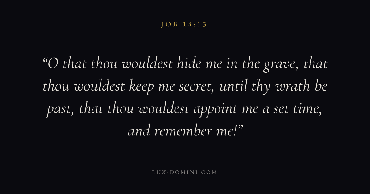 O that thou wouldest hide me in the grave, that thou wouldest keep me secret, until thy wrath be past, that thou wouldest appoint me a set time, and remember me!