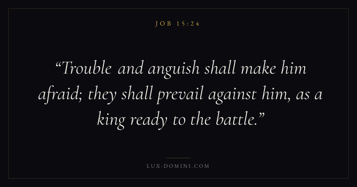 Trouble and anguish shall make him afraid; they shall prevail against him, as a king ready to the battle.