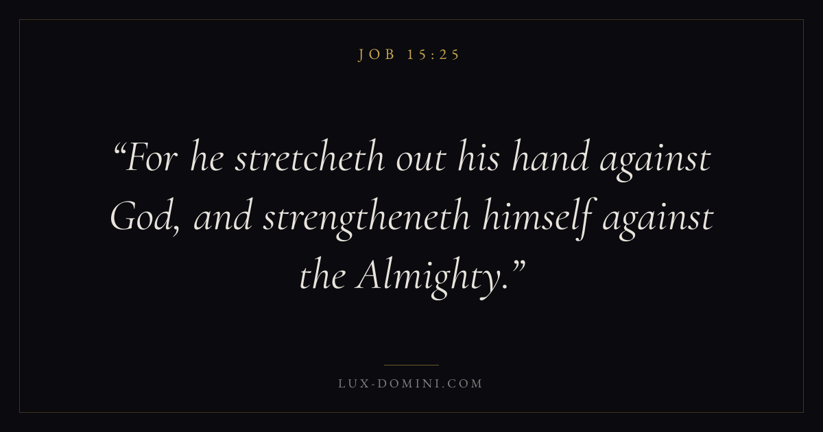 For he stretcheth out his hand against God, and strengtheneth himself against the Almighty.