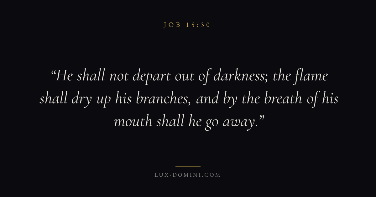 He shall not depart out of darkness; the flame shall dry up his branches, and by the breath of his mouth shall he go away.