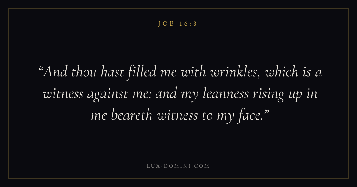 And thou hast filled me with wrinkles, which is a witness against me: and my leanness rising up in me beareth witness to my face.