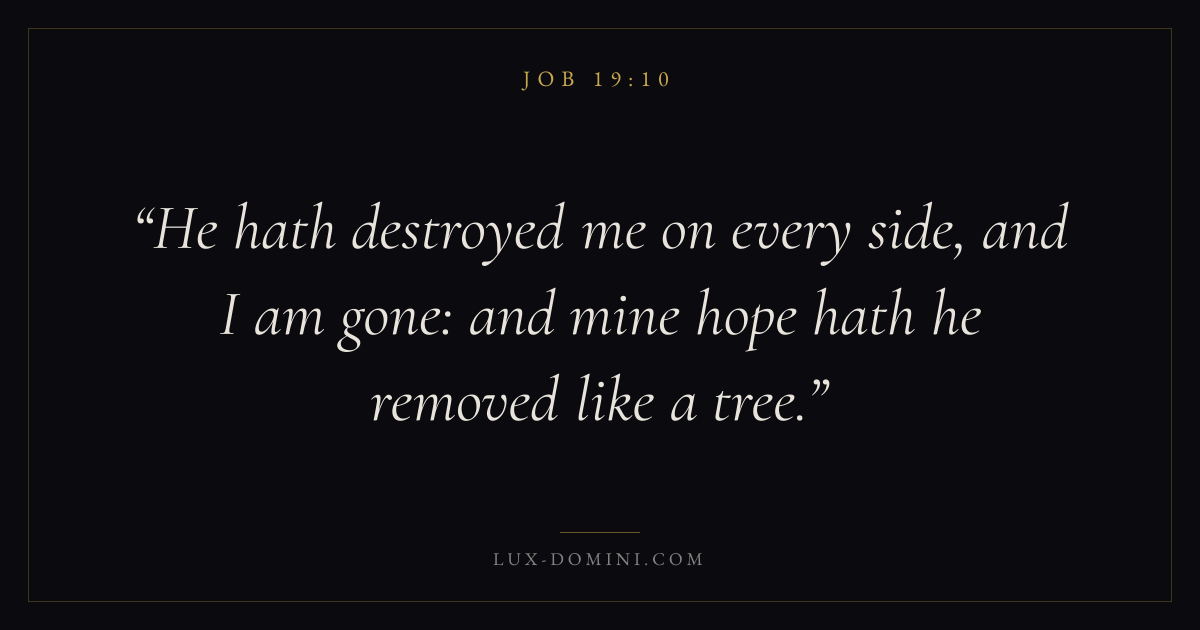 He hath destroyed me on every side, and I am gone: and mine hope hath he removed like a tree.