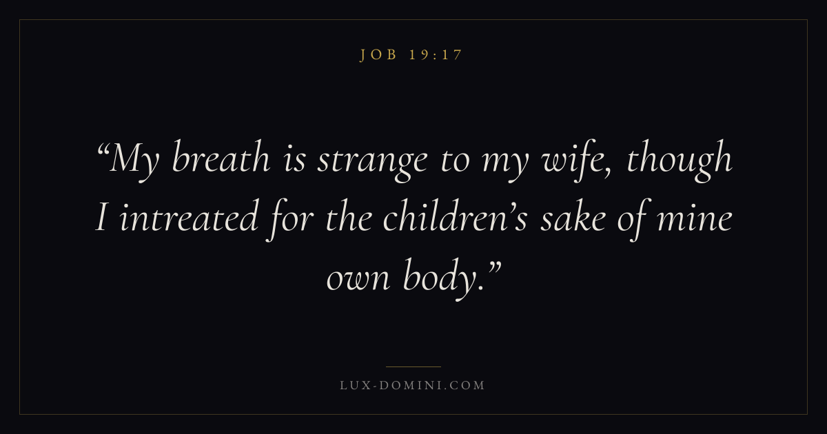 My breath is strange to my wife, though I intreated for the children’s sake of mine own body.