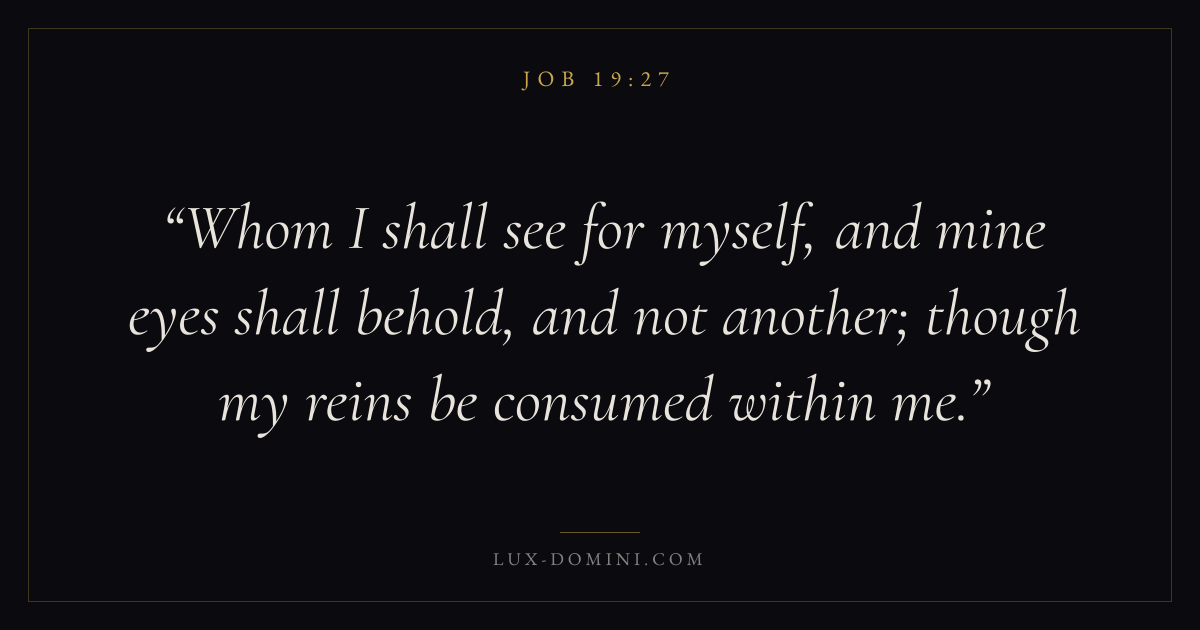 Whom I shall see for myself, and mine eyes shall behold, and not another; though my reins be consumed within me.