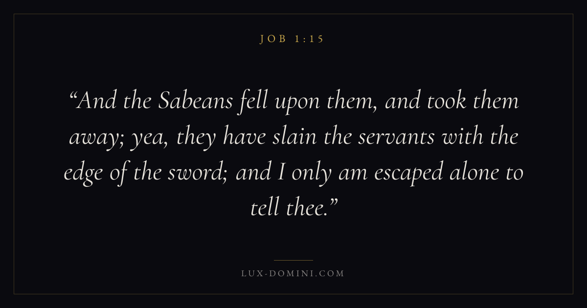 And the Sabeans fell upon them, and took them away; yea, they have slain the servants with the edge of the sword; and I only am escaped alone to tell thee.