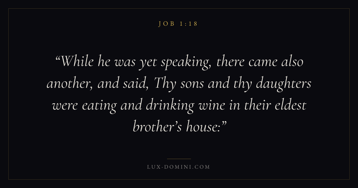 While he was yet speaking, there came also another, and said, Thy sons and thy daughters were eating and drinking wine in their eldest brother’s house: