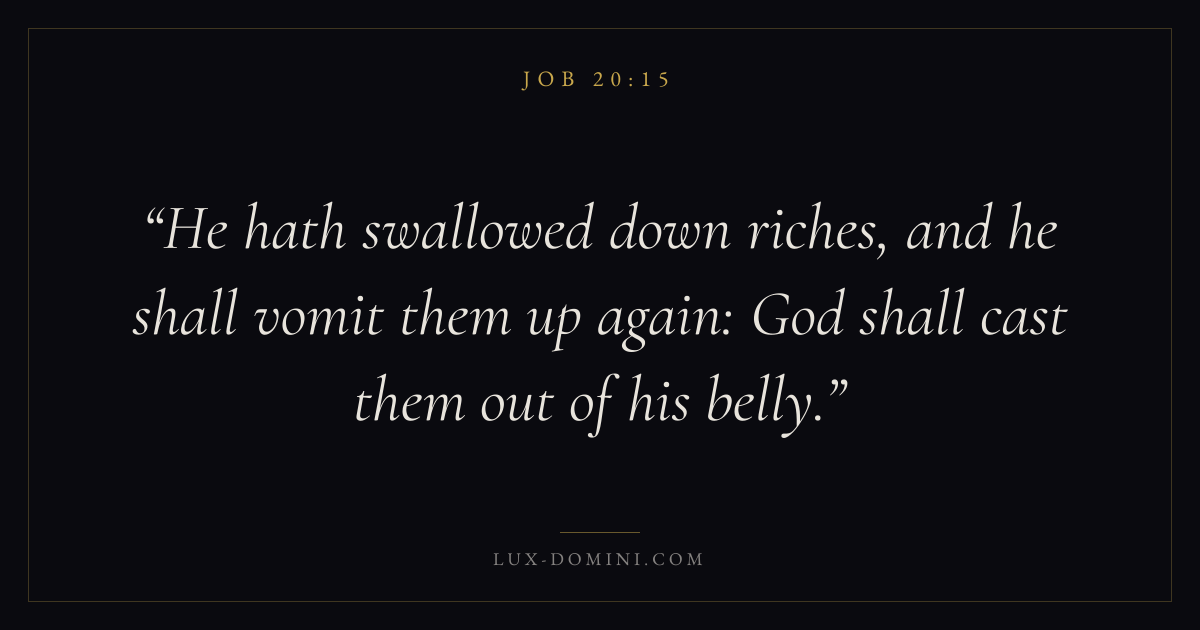 He hath swallowed down riches, and he shall vomit them up again: God shall cast them out of his belly.