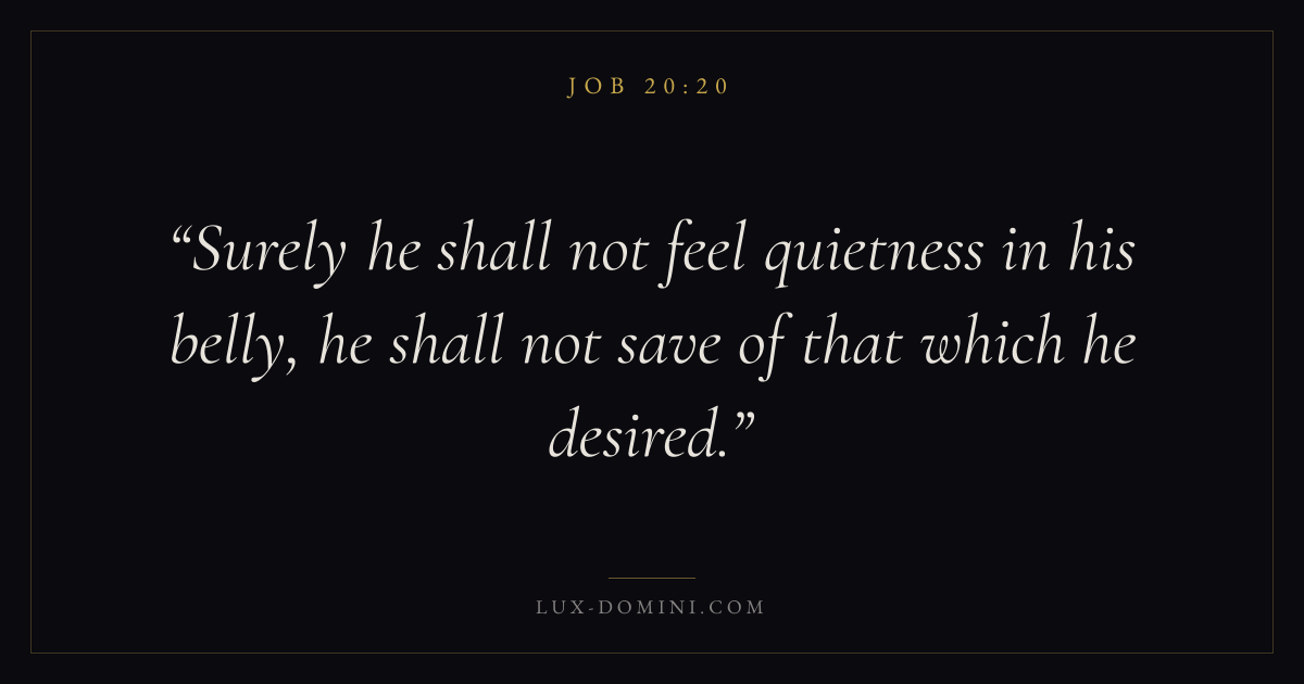 Surely he shall not feel quietness in his belly, he shall not save of that which he desired.