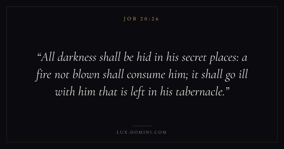 All darkness shall be hid in his secret places: a fire not blown shall consume him; it shall go ill with him that is left in his tabernacle.