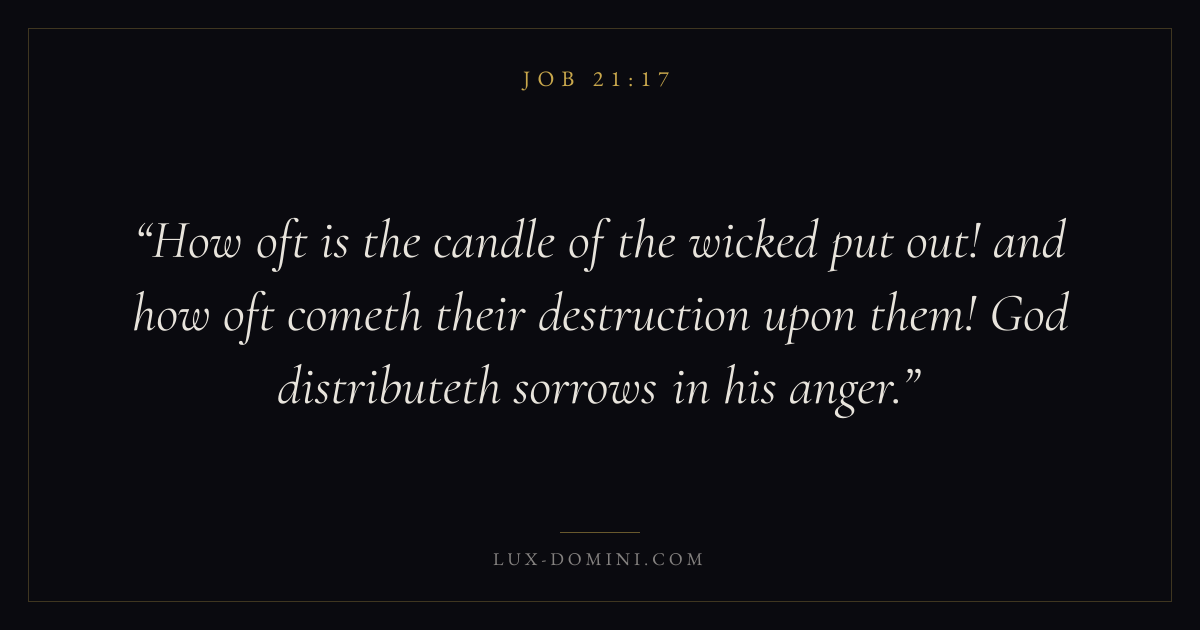 How oft is the candle of the wicked put out! and how oft cometh their destruction upon them! God distributeth sorrows in his anger.