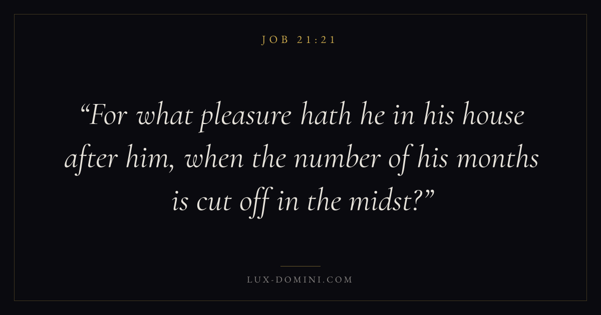 For what pleasure hath he in his house after him, when the number of his months is cut off in the midst?