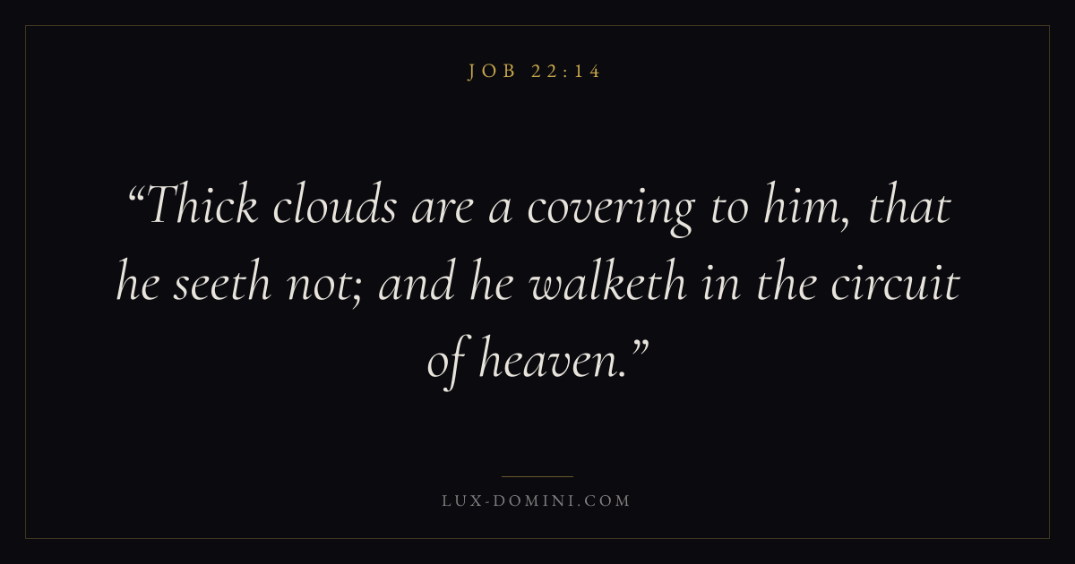 Thick clouds are a covering to him, that he seeth not; and he walketh in the circuit of heaven.