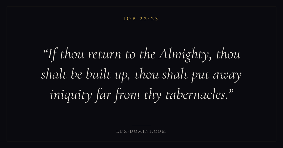 If thou return to the Almighty, thou shalt be built up, thou shalt put away iniquity far from thy tabernacles.