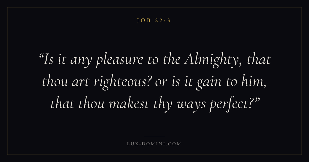 Is it any pleasure to the Almighty, that thou art righteous? or is it gain to him, that thou makest thy ways perfect?