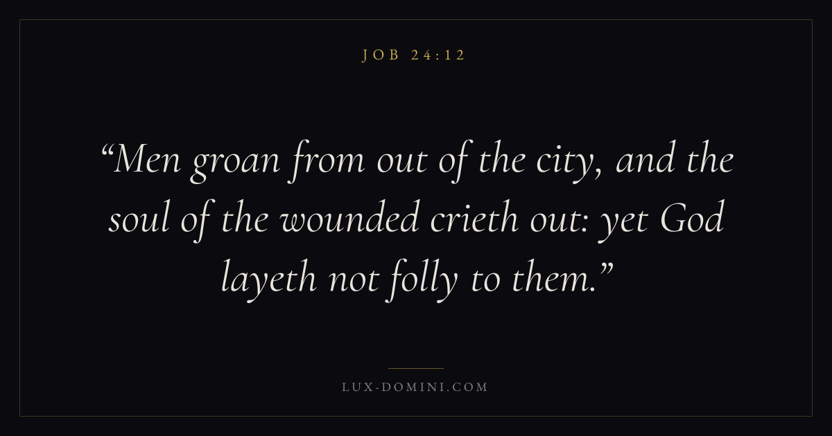 Men groan from out of the city, and the soul of the wounded crieth out: yet God layeth not folly to them.