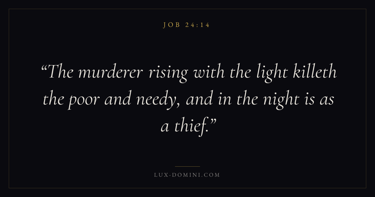 The murderer rising with the light killeth the poor and needy, and in the night is as a thief.
