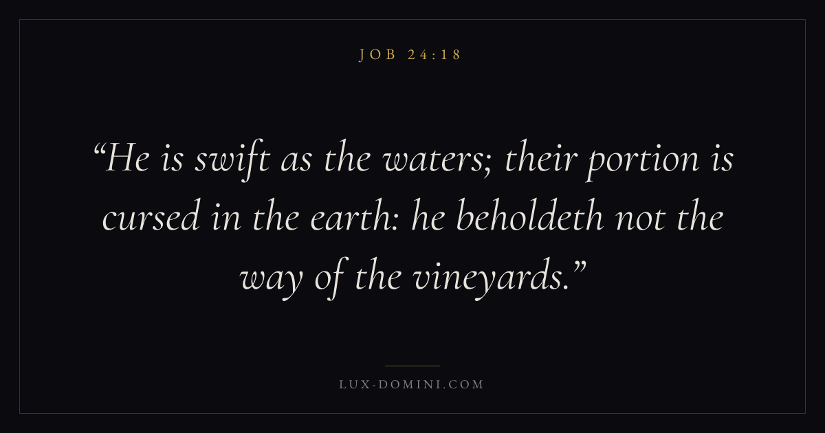 He is swift as the waters; their portion is cursed in the earth: he beholdeth not the way of the vineyards.