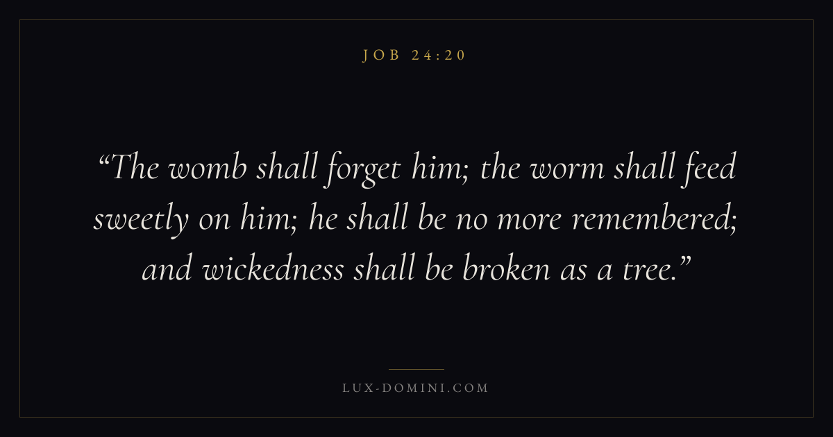 The womb shall forget him; the worm shall feed sweetly on him; he shall be no more remembered; and wickedness shall be broken as a tree.